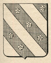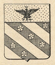 ARMA: Bandato di nero e d’argento; le bande di nero caricate di sei rose d’argento 1, 3, 2; col capo di oro carico di una aquila di nero, coronata del campo.