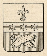ARMA: Troncato con la fascia di azzurro sulla partizione, carica di tre stelle di sei raggi d’oro; al 1° di argento al giglio d’oro, cucito; al 2° di rosso a due branche di leone d’oro strappate, decussate, le unghie in alto.