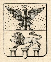 ARMA: Troncato di oro e d’argento, il 1° all’aquila di nero coronata del campo, il 2° a tre colonne al naturale, uscenti da la punta dello scudo e sostenenti un leone di rosso illeopardito.