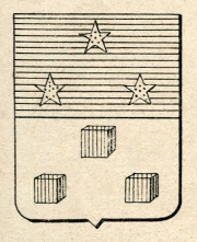 ARMA: Troncato: nel 1° di azzurro a tre stelle d’oro a cinque punte male ordinate; nel 2° d’argento a tre dadi di rosso male ordinati.