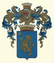 ARMA: D’azzurro al leone d’oro rampante tenente con le due branche una mazza ferrata al naturale, con una stella di oro nel canton destro del capo.