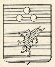ARMA: Bandato di argento e di azzurro, all’ippogrifo rampante di verde attraversante sul tutto, col capo di azzurro a tre palle d’argento male ordinate (Il capo con le palle sarebbe stato aggiunto per concess. del pontefice Pio IV).