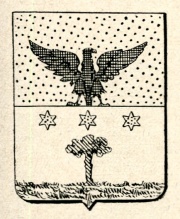 ARMA: Troncato di oro e d’argento: il 1° all’aquila di nero: il 2° all’albero di verde nodrito sulla pianura erbosa, sormontato da tre stelle (6) d’oro, ordinate in fascia.