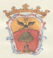ARMA: Di rosso al gelso al naturale sostenuto da due leoni d’oro, affrontati e controrampanti; col capo d’oro carico d’un’aquila di nero, coronata del campo.