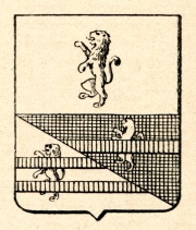 ARMA: Troncato: il 1° d’argento al leone al naturale: il 2° trinciato di nero al leone d’argento e d’argento al leone al naturale, con tre fascie di rosso attraversanti la 1a sul primo punto le altre sul secondo.