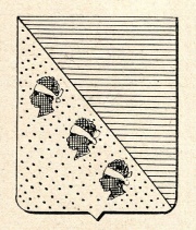 ARMA: Trinciato, sopra d’azzurro pieno, sotto d’oro a tre teste di moro, colle labbra di rosso, bendate d’argento e poste in banda.