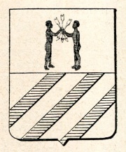 ARMA: Troncato: nel 1° d’argento a due mori al naturale affrontati, tenenti fra ambedue tre frecce d’argento impugnate; nel 2° d’argento a tre sbarre d’azzurro.