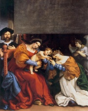Lorenzo Lotto. Nozze mistiche di S. Caterina. In seconmdo piano a sinistra, il ritratto di Niccolò Bonghi