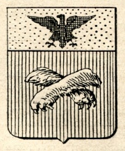 ARMA: Di rosso a due branche di leone al naturale, poste in croce di Sant’Andrea, col capo d’oro caricato di un’aquila di nero.