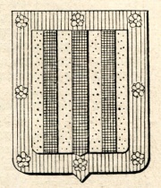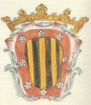 ARMA: D’oro a tre pali di nero con la bordura di rosso caricata di otto rose d’argento.