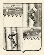 ARMA: Inquartato: nel 1° e 4° troncato inchiavato d’azzurro e d’argento di quattro punte e due mezze nel primo che è caricato di tre stelle di 8 raggi d’oro male ordinate; nel 2° e 3° di rosso alla gamba d’argento calzata fin sopra al ginocchio di nero.