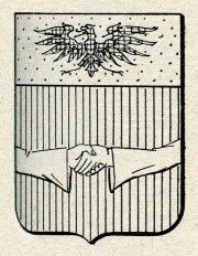Alias: Di rosso alla fede di carnagione, vestita d’argento, movente dai fianchi dello scudo, col capo d’oro carico di un’aquila di nero.