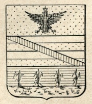 ARMA: Interzato in fascia: nel 1° d’oro all’aquila di nero coronata del campo; nel 2° fasciato d’argento e d’oro di quattro pezzi alla banda di rosso attraversante; nel 3°, sotto un cielo al naturale, quattro piante di verde moventi da una palude al naturale e sul davanti una terrazza di verde portante quattro piante dello stesso più basse delle altre.