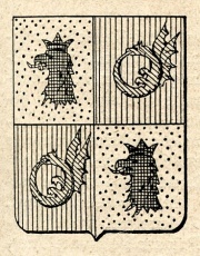ARMA: Inquartato: nel 1° e 4° d’oro a una testa d’aquila coronata di nero; nel 2° e 3° di rosso ad un drago ripiegato ad anello di verde, cucito.