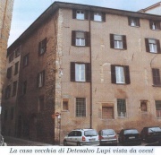 [643] Il 18/4/1474 nella vicinia di Antescolis nella caminata dei fratelli Lupi troviamo il milite Filippo e Girardo a nome di Bernardino e degli altri fratelli, che investirono beni con una mola da guado a Colognola al Piano ed Azzano (Not. Bart. Zanchi imbr. 1472-1475 81; Mozzi IV, 120v). Nel 1483 troviamo a Bergamo, S. Salvatore caminata di Petrino e Detesalvo fu Detesalvo (Not. Gaspare Guarneri ASBg not. 444 1/7/1483). Nel 1484 troviamo la caminata di Filippo Lupi (Not. Bernardino dell’Acqua di S. Gallo ASBg not. 817 imbrev. 1479-1493 42v-45; Lupi “Memorie…” 174) e nel 1489 la casa dei suoi eredi (Not. Tonolo Macheris Bordogna ASBg not. 919 imbrev. 1489-1492 31-31v; Lupi “Memorie…” 174). Il 26/5/1492 nella vicinia di Antescolis troviamo la sala di residenza di Pedrino fu Detesalvo e la casa di abitazione di Bart. fu Bart. fu cav. Detesalvo (Not. Gelmino Zonca ASBg not. 659 imbrev. straordinaria 1471-1495 197-203). La casa di Pedrino compare anche il 2/3/1495 a Bergamo in vicinia di Arena o di Antescolis nella sala grande della casa di residenza di Pietro Lupi (Not. Gelmino Zonca ASBg not. 659 imbrev. straordinaria 1494-1511 8v-9; citato in PRB). Nell’estimo del 1498 troviamo Pedrino e Salvo nella vicinia di Antescolis (Estimo 44v; Mozzi 43v). Gio: Maria fu Pedrino Lupi in una polizza del 22/2/1526 dichiarò di abitare con la famiglia in una casa nella vicinia di Antescolis, in una del 22/3/1526 di Bernardo fu Filippo cav. Lupi anche lui aveva una casa in Antescolis (Estimi comunali 147 polizza 54). Il 17/1/1578 troviamo una casa di proprietà ed abitazione del fu Guerino Lupi nella vicinia di Antescolis (AG), nella quale il 15/1/1580 abitava la sua vedova Lucrezia (Estimi comunali 498, 219v). Nella divisione del 18/4/1585 Adriano ed Orazio fu Pietro toccò a quest’ultimo una casa coppata solerata cilterata, curtiva, lobiata et lodiata giacente in Antescolis confinante ad est con gli eredi del co: Giacinto Benaglio, a sud con quelli di Aless. Lupi, ad ovest e nord strada (Not. Gabr. Lazzaroni XXI, 1585, N.° 3719, atto 141). In una polizza di Orazio in data 30/3/1590 troviamo fra i beni pervenutigli per le suddette divisioni una casa nel piazzolo di S. Maria Maggiore ad est co: Benagli, a nord ed ovest strada. Era affittata al co: Lodovico Benaglio e sublocata a Mario Lanzi per 43 scudi. Vi era la condizione che potevan far miglioramenti e spese essendo essa molto sconquassata e minacciante rovina. Nei miglioramenti vi sarebbe stata una spesa di almeno 300 scudi. In caso contrario si sarebbe affittata a più di 30 scudi. La stessa polizza venne poi ripresentata dal figlio Corrado fu Orazio il 26/6/1609 (Catasto veneto 24, polizza 26. In una polizza del 19/5/1576 troviamo i beni del co: Giacinto fu co: Guido Benaglio ed una casa per suo uso in vicinia di Antescolis confinante ad est via ed ovest Lupi (Estimi comunali 490, polizza 40) Guidotto fu Tilessio Benaglio in Antescolis aveva una casa per suo uso con orto, confinante a sud con il co: Giacinto ed est con Gerolamo Benaglio (Estimi comunali 490, polizza 45). In una polizza del 1582 di Pompeo e Cesare fratelli fu Cesare Lupi troviamo una casa nella contrada di Rosate per loro uso, confinante ad est Orazio Marenzi ed ovest strada; un orto ad est strada ed ovest Orazio Marenzi (Estimi veneti vol. 7, polizza 101). In una polizza del 31/6/1582 dei fratelli Pompeo, Mario e Cesare fu Cesare troviamo una casa con orto nella vicinia di Antescolis per loro uso ed abitazione (Estimi comunali 490, polizza 60; Estimi comunali 490, polizza 60). In una polizza del 27/1/1592 sempre di Pompeo e Cesare, troviamo la stessa casa in contrada di Rosate di loro uso confinante ad est con Orazio Marenzi, ad ovest strada e l’orto ad est strada ed ovest Orazio (Catasto veneto 21, polizza 3).