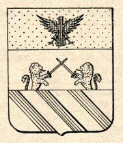 ARMA: Interzato in fascia: nel 1° d’oro all’aquila di nero; nel 2° d’argento a due leoni d’oro (per inchiesta) affrontati e armati ciascuno di una spada al naturale, colle lame decussate in atto di duellare; al 3° d’argento a tre bande di verde.