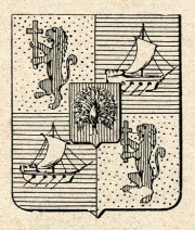 ARMA: Inquartato: nel 1° e 4° d’oro al leone rampante di rosso portante nelle zampe una croce dello stesso; nel 2° e 3° d’azzurro a una barca d’argento. Sul tutto di rosso al pavone ai naturale.