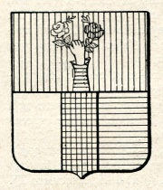 ARMA: Troncato: nel 1° di rosso al destrocherio in palo uscente dalla partizione, vestito d’azzurro e tenente un serto di rose al naturale con due fiori, l’uno bianco, l’altro rosso; nel 2° partito di argento e di azzurro al palo di nero sulla partizione.