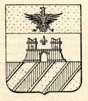 ARMA: Interzato in fascia: nel 1° d’oro all’aquila di nero, coronata del campo; nel 2° d’argento al castello di rosso, fondato sulla partizione, aperto e finestrato del campo e sormontato da un giglio cucito di oro; nel 3° sbarrato di rosso e d’oro, le partizioni attraversate da cinque filetti d’argento.