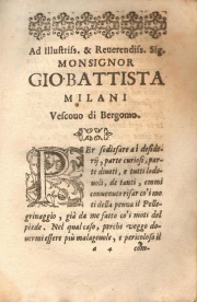 All’Illustriss. & Reverendiss. Sig. MONSIGNOR GIOBATTISTA MILANI Vescovo di Bergomo Ill.mo & R.mo Signore Padrone col.mo