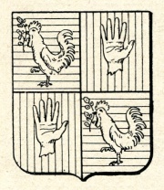ARMA: Inquartato: nel 1° e 4° d’azzurro al gallo di argento tenente nel becco un ramo di pero d’oro; nel 2° e 3° di rosso alla mano destra appalmata di carnagione.