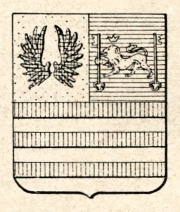 ARMA: Semipartito e troncato: nel 1° d’oro al volo di nero; nel 2° d’azzurro, al leone coronato di oro, illeopardito, tenente con la branca anteriore destra una chiave d’argento, in palo, ed accompagnato a sinistra da un’altra chiave dello stesso, le due chiavi addossate, con gli ingegni in alto; nel 3° fasciato di rosso e d’argento.