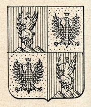 ARMA: Inquartato: nel 1° e 4° di rosso, al grifone d’argento, linguato di rosso, coronato d’oro, con la coda piegata fra le gambe, tenente un ramoscello di pepe, al naturale, curvato; il grifone sostenuto da un monte, cucito, di tre cime dì verde; nel 2° e 3° d’oro all’aquila di nero, coronata del campo.