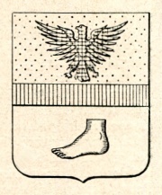 Alias: Troncato: nel 1° d’azzurro; nel 2° d’argento al piede destro di carnagione al naturale rivoltato; con la fascia di rosso indivisa sulla troncatura. (Raccolta Camozzi, n. 1520; Anonimo, p. 1; Pagano, p. 118; Castello, p. 22).