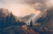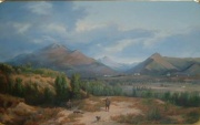 Il dipinto Vallata bergamasca con viandanti esposto nel 1933 con il n. 19 alla «Mostra dei paesisti bergamaschi dell’800» in piazza Dante a Bergamo, presenta una composizione di più ampio respiro: zona di penombra in primo piano, dove s’intravedono le figure dei viandanti; in secondo piano un raggio di sole illumina la strada e il ciclo.