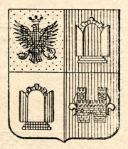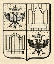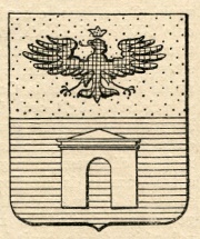 ARMA: Inquartato: nel 1° e 4° d’oro all’aquila bicipite di nero sormontata dalla corona dell’impero del campo; nel 2° di rosso alla porta d’argento; nel 3° d’argento alla porta di rosso. Lo scudo accollato all’aquila di nero sormontata dalla corona dell’impero d’oro.