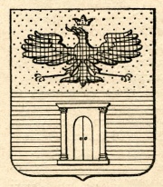 ARMA: D’argento alla porta aperta di due ante di rosso, scalinata di tre pezzi dello stesso.