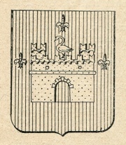 ARMA: Di rosso al castello torricellato di due pezzi, accompagnato da tre gigli, due ai lati e uno in punta, il tutto d’oro, e sostenente un uccello detto «bernacla» d’argento