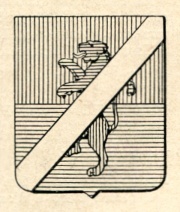ARMA: Troncato di rosso e di azzurro a un leone rampante dell’uno nell’altro, con la sbarra d’argento attraversante sul tutto.