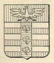 ARMA: Fasciato d’argento e di rosso, al palo di azzurro, carico di tre trifogli d’oro; col capo di rosso, carico di un’aquila coronata d’argento.