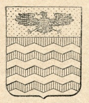 Alias: Fasciato indentato di rosso e d’argento di otto pezzi col capo d’oro caricato di un’aquila di nero.
