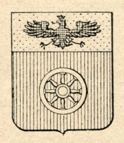 ARMA: Di rosso alla ruota d’argento di otto raggi col capo d’oro, carico di un’aquila di nero, coronata d’oro.