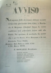 Avviso della Costituzione di un Governo Provvisorio a Bergamo (23 marzo 1848)