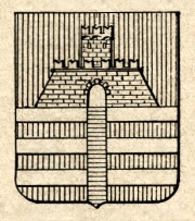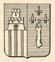 Alias: Troncato: nel 1° d’azzurro al castello torricellato e col mastio al centro, il tutto merlato, d’argento, alla porta di nero, carica di un guerriero d’argento; nel 2° d’argento al palo diminuito di nero ed alla fascia di rosso sul tutto (Roncalli Frosio; Pagano 125).