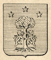 ARMA: D’azzurro alla rovere sradicata, sostenuta da due leoni affrontati, il tutto al naturale e sormontato da tre stelle d’oro, male ordinate.