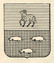 Alias: Troncato: nel 1° d’azzurro all’ariete d’oro passante; nel 2° di nero a tre talpe di argento, 2 e 1.