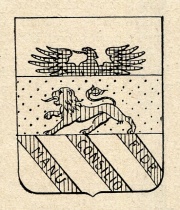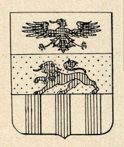 ARMA: Interzato in fascia: nel 1° d’argento all’aquila nascente di nero, imbeccata e linguata di rosso; nel 2° d’oro al leone illeopardito di rosso, movente dalla troncatura; nel 3° d’ argento a tre bande di rosso cariche in lettere maiuscole romane d’oro del