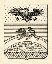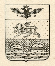 ARMA: Troncato: nel 1° d’oro all’aquila di nero, coronata del campo; nel 2° campo di cielo al ponte arcuato sopra un fiume, al naturale, e in forma di fascia convessa, con un leone di rosso illeopardito e passante sul ponte.