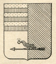 ARMA: Semitroncato partito: nel 1° fasciato d’oro e di rosso; nel 2° d’argento pieno; nel 3° di verde pieno; sul tutto, in punta, un corvo di nero attraversante, tenente nel becco un anello d’oro con diamante, ed appollaiato sopra un dardo di rosso, posto in fascia.