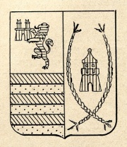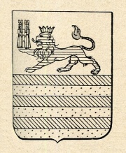 ARMA: Troncato: nel 1° d’argento al leone d’azzurro, linguato di rosso, tenente con la branca anteriore destra un castello, torricellato di due pezzi, di rosso; nel 2° fasciato di azzurro e d’arg.