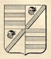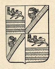 Alias: Troncato: nel 1° d’ argento al leone d’azzurro, passante sulla troncatura, linguato di rosso, sostenente con la branca destra un castello dello stesso; nel 2° fasciato d’azzurro e d’argento.
