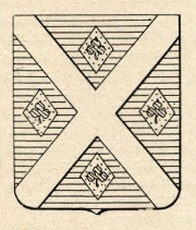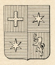 ARMA: Inquartato: nel 1° di rosso alla croce di oro scorciata; nel 2° e 3° d’azzurro alla stella d’argento di sei raggi; nel 4° di rosso al leone di argento tenente con la branca destra una scimitarra dello stesso.