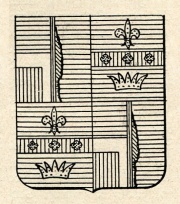 Alias: Partito: nel 1° d’oro al cipresso di verde nodrito su la campagna erbosa dello stesso; nel 2° troncato d’azzurro e di rosso alla fascia caricante la troncatura ed al mezzo palo scendente verso la punta lungo la partizione, il tutto d’argento (Pagano, pag. 133; Raccolta Camozzi, num. 1861; Manganelli, pagina 64. Nel primo punto, invece del cipresso, anche uno spino).