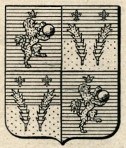 (alias): Inquartato: nel 1° e 4° d’azzurro al leone coronato d’oro, rivolto, tenente una palla d’argento; nel 2° e 3° troncato d’azzurro e d’oro a due palme dell’uno all’altro; addossate e sormontate ognuna da un giglio del secondo.
