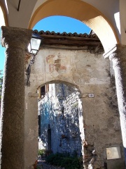 ARMA: Interzato in fascia: al 1° d’oro all’aquila di nero coronata del campo, tenente nel becco e negli artigli tre gigli del campo; al 2° di rosso, alla testa di moro al naturale bendata di argento; al 3° partito, a destra di rosso a quattro pali d’oro; a sinistra di azzurro.