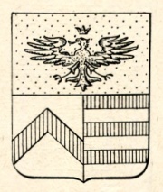 ARMA: Troncato semipartito: nel 1° d’oro all’aquila al naturale coronata del campo; nel 2° di argento allo scaglione di rosso; nel 3° fasciato di rosso e d’argento.